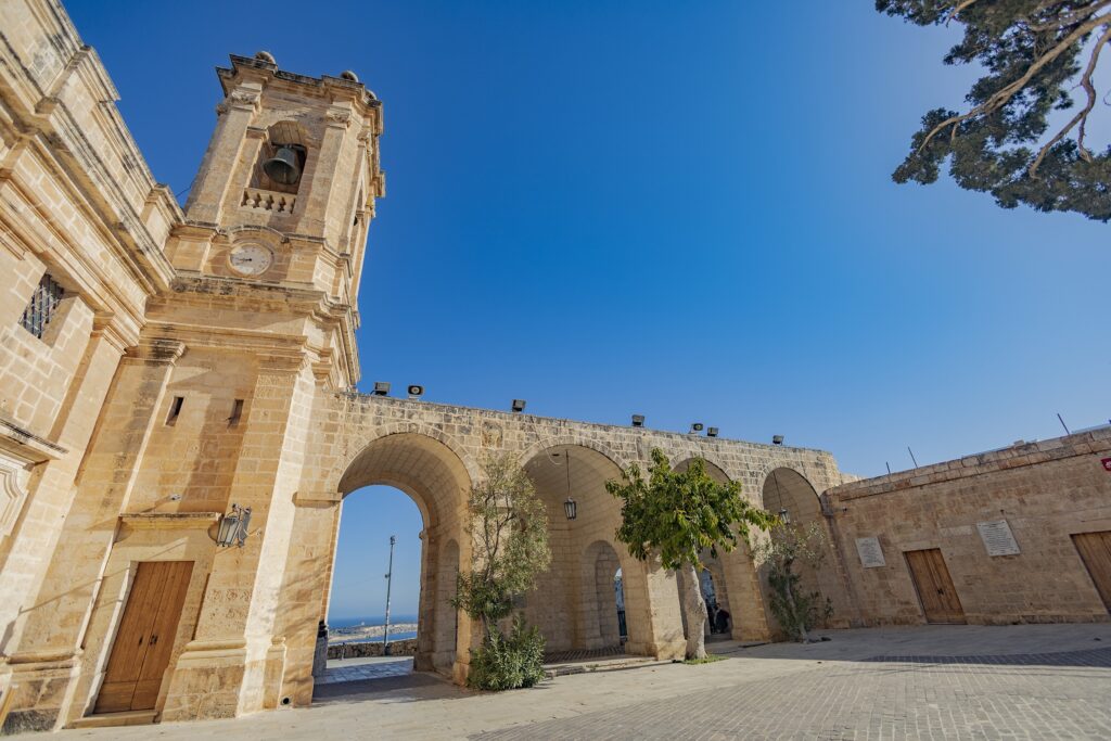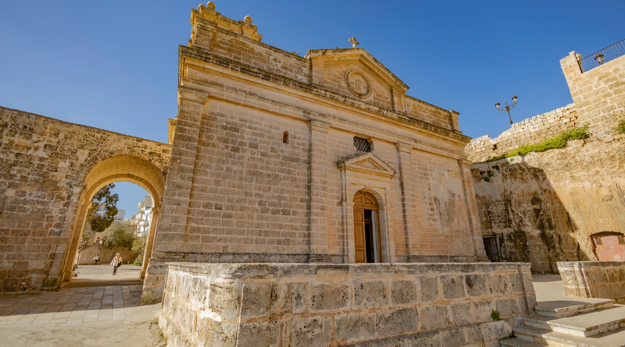 El Santuario de Nuestra Señora de Mellieha es uno de los centros de peregrinación más antiguos de Malta. Su origen se encuentra en una sencilla cueva iglesia excavada en la roca, con techo elíptico y decorada con una pintura mural bizantina de la Virgen con el Niño. Este lugar, venerado desde los primeros tiempos del cristianismo en la isla, probablemente comenzó como una gruta natural que luego fue ampliada y estructurada. Con el tiempo se transformó en un complejo religioso organizado en torno a un amplio patio central con una fuente instalada en 1644 para abastecer a los peregrinos, junto a la gruta iglesia, una logia y diversas habitaciones destinadas al alojamiento.