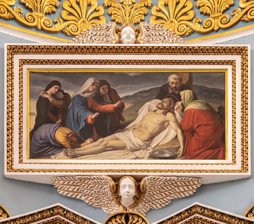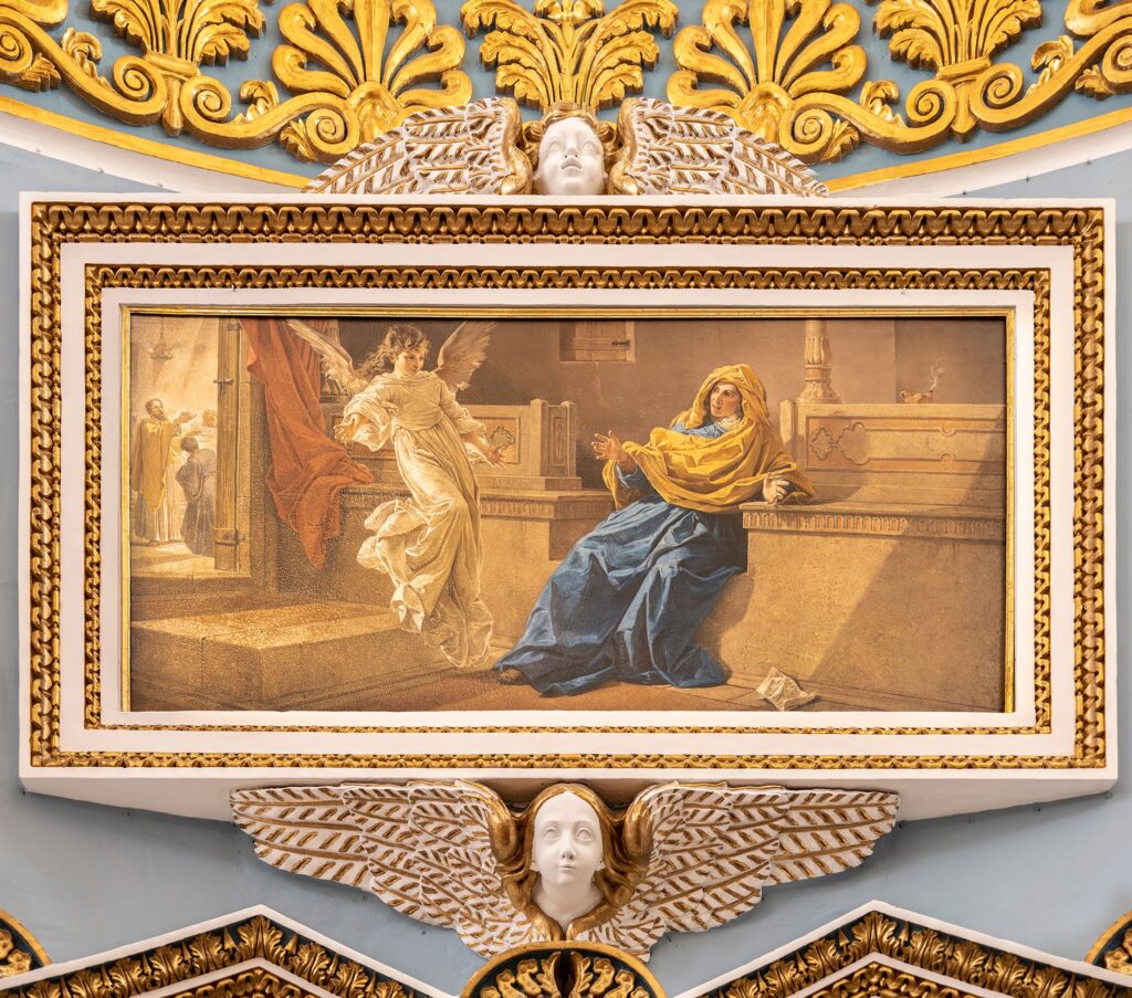 La pieza central del templo es la pintura titular de la Asunción de Nuestra Señora, obra de Stefano Erardi de 1678. El lienzo representa a la Virgen elevada por ángeles ante la mirada de los apóstoles congregados junto a una tumba vacía. En 1975, tras un decreto del Papa Pablo VI, la imagen fue coronada solemnemente con una pieza de oro realizada por Giuseppe Galea. Recientemente, un proyecto cofinanciado por la Unión Europea ha permitido la restauración integral tanto del tejido del edificio como de sus capas pictóricas y bastidores, combatiendo el deterioro por humedad y contaminación. Esta intervención incluyó además la modernización de los sistemas de iluminación y accesibilidad, garantizando la preservación de este monumento histórico para la comunidad.