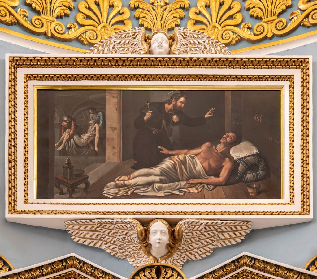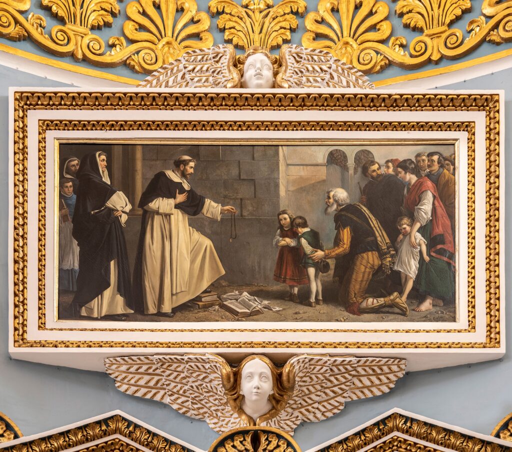 El patrimonio artístico de la iglesia alberga importantes ciclos pictóricos, entre los que sobresale un conjunto de siete obras de Giuseppe Calì ejecutadas en el siglo XIX. Estas piezas, reconocidas por su luminosidad y realismo histórico, abordan principalmente temas marianos como la Anunciación y la Visitación, además de pasajes de la vida de San Agustín y figuras dominicas. Asimismo, la Rotonda conserva siete cuadros de estilo barroco anteriores al edificio actual; cuatro de ellos pertenecen a Stefano Erardi, incluyendo representaciones de santos protectores contra la peste y visiones místicas. Completan la colección obras de Filippo Dingli, seguidores de Mattia Preti y una pieza de estilo caravaggista sobre el relato bíblico de Caín y Abel.
