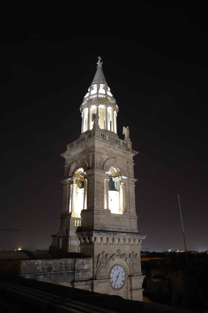 The main façade is a showcase of religious iconography, adorned with allegorical figures of the Hope and the Charityand crowned by an image of the Risen Christ on the pediment. To harmonize these additions, the parvis The atrium was expanded in 1908, surrounding the church with a perimeter wall and wrought-iron gates that welcome worshippers and visitors into this monument, consecrated in 1785. In addition to its aesthetic value, the British bell tower houses clocks by the renowned Maltese master Mikiel Anġ Sapiano and bells cast in London, thus blending local tradition with the colonial influence of the era.