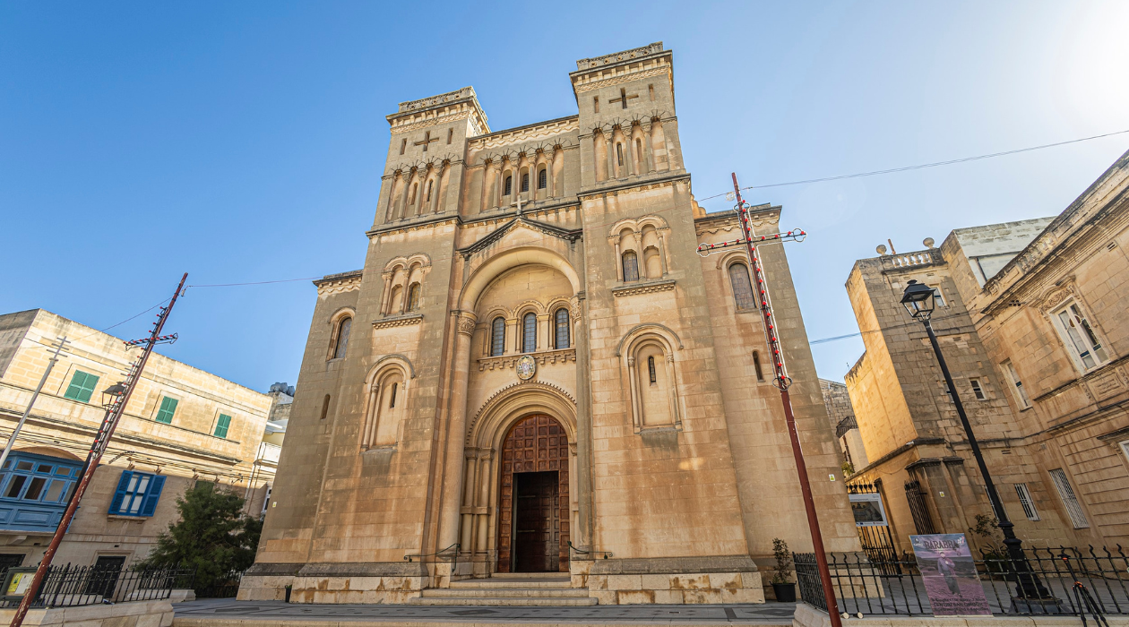 The construction of this church was driven by Archbishop Mauro Caruana during World War I, as a spiritual commitment to the British soldiers wounded and recovering in Sliema. Caruana, a Benedictine monk whose remains rest beneath the church's transept, financed both the land and the building, dedicating it to the saint who Christianized England. Architecturally, the temple stands out for its medieval Romanesque style, visible in its double columns, its two lateral bell towers equipped with 14 bells from 1948, and a simple ornamentation highlighted in the cornices and polymorphic windows.