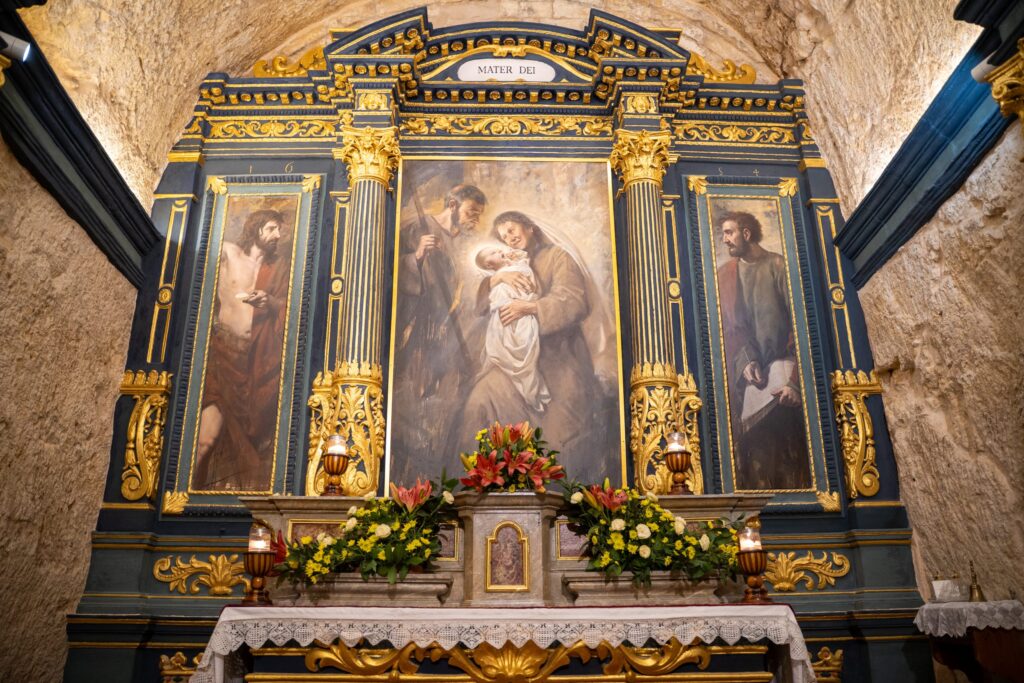 El interior de la iglesia destaca por su sencillez estructural y su atmósfera cargada de historia. El elemento central es el altar dedicado a la Natividad de la Virgen, una advocación profundamente ligada a la victoria del Gran Sitio (el 8 de septiembre, día de la festividad). A pesar de los daños sufridos durante siglos de guerras, especialmente durante los intensos bombardeos de la Segunda Guerra Mundial, el espacio conserva una acústica excepcional y una luz natural que resalta la pureza de la piedra maltesa. En su interior se respira un aire de solemnidad, recordando que este fue, durante mucho tiempo, el refugio espiritual de aquellos que tenían la responsabilidad de proteger todo el archipiélago.