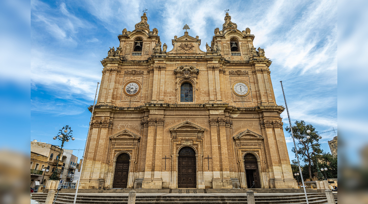 La iglesia de Santa Elena es una joya del barroco cuya autoría se atribuye a un esfuerzo combinado de los arquitectos Salvu Borg, Giovanni Domenico Cachia y Don Nicola Borg. Su diseño arquitectónico, de planta de cruz latina, se inspira directamente en la Catedral de Mdina de Lorenzo Gafà, destacando por una fachada imponente donde el eje central sobresale audazmente. El edificio cuenta con una magnífica cúpula que se eleva sobre un tambor hexagonal con ventanas alargadas, además de dos campanarios ornamentados con agujas que albergan siete campanas, incluyendo la gran “Helena” fabricada en Milán en 1931.
